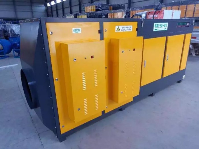 等離子光氧一體機是一種專門去除有毒有害氣體及惡臭氣體的一種裝置。光氧催化設(shè)備利用高能臭氧UV紫外線光束分解空氣中的氧分子產(chǎn)生游離氧,因游離氧所攜正負(fù)電子不平衡,所以需與氧分子結(jié)合,進(jìn)而產(chǎn)生臭氧。臭氧對紫外線光束照射分解后的有機物具有不錯的氧化作用,對惡臭氣體及其它刺異味有良好的消除效果。利用UV光束裂解惡臭氣體中細(xì)菌的分子鍵,破壞細(xì)菌的核酸(DNA),再通過臭氧進(jìn)行氧化反應(yīng),達(dá)到脫臭及消菌的目的。等離子光解一體機具有運行成本低、設(shè)備占地面積小,自重輕、無機械動作,無噪音等特點,凈化效率在95%以上。